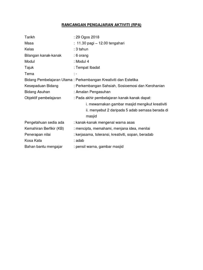 Rancangan pelaksanaan aktiviti (minggu 9) hari selasa. Nor azura ismail pnnorazuraismail@gmail.com taska elit … Bidang perkembangan sahsiah, sosioemosi dan kerohanian. Rancangan pelaksanaan aktiviti (rpa) perkembangan sahsiah, sosioemosi dan kerohanian.